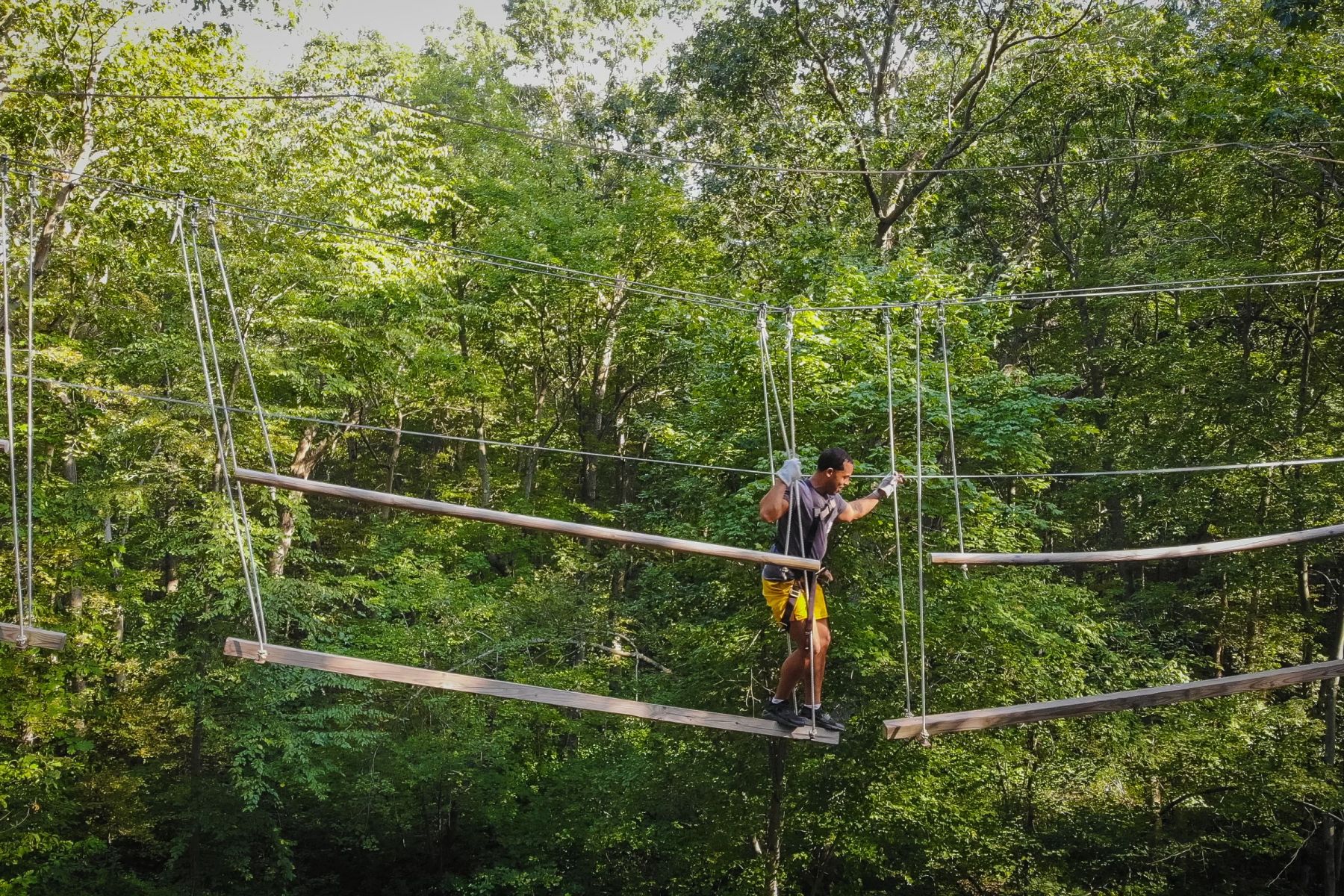 Outdoor Ventures built its first commercial ropes park consisting of over 170 elements at Catamount Ski Resort in the Berkshires of Massachusetts and was an immediate success.